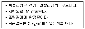 다음과 같은 성질을 갖는 화성암은?
