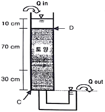 다음 그림과 같은 토양 컬럼실험에서 지점 C와 지점 D에서의 전수두 (total head)를 올바르게 나타낸 것은?