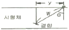 그림과 같은 경사각탐상시험에서 빔거리가 W 일 때 표면거리 y를 구하는 식으로 옳은 것은?