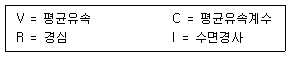 원형지하 배수관의 굵기를 결정하기 위한 평균 유속(流速) 산출 공식은?