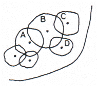 그림과 같은 식재설계 시 경관목(景觀木)의 위치로 가장 적합한 것은?