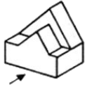 다음 입체도를 3각법에 의해 3면도로 옳게 투상한 것은? (단, 화살표 방향을 정면으로 한다.)