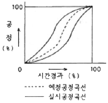 공정관리 곡선 작성중 아래 표에서와 같이 실시 공정 곡선에 예정 공정 곡선에 대래 항상 안전범위 안에 있도록 예정곡선(계획선)의 상하에 그리는 허용한계선을 일컫는 명칭은?