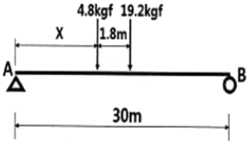 다음의 단순보에서 A점의 반력 이 B점의 반력의 3배가 되기 위한 거리 x는 얼마인가?