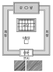다음의 사찰 배치도는 1탑1금당식의 전형적인 배치를 보여주고 있다. 이 사찰의 배치는 연지가 있고 중문, 5층 석탑, 금당, 강당이 차례로 놓여져 있으며 회랑으로 둘러져 있는 사찰의 명칭은?