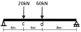 그림과 같은 하중을 받는 단순보의 지점 D에서 휨모멘트 크기는?(문제 오류로 D가 없네요.. 정답은 3번입니다. 여러분들의 많은 의견 부탁 드립니다.)