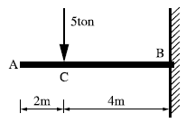 캔틸레버보에 집중하중을 받고 있을 때 작용하는 힘에 대한 설명이 옳은 것은?