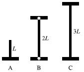 그림과 같은 동질(同質), 동단면(同斷面)의 장주(長柱)압축재로 축방향 하중에 대한 강도의 상호관계로서 옳은 것은?