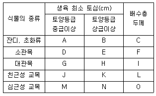 조경설계기준에서 제시한 표 중 “H”에 해당하는 수치는?