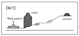 다음 보기의 단면도와 같은 배치를 보이는 르네상스 시대의 별장 정원은?