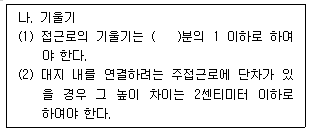 일반적으로 “장애인 등의 통행이 가능한 접근로”에 대한 설명 중 ( )안에 적합한 값은? (단, 관련 규정을 적용, 지형상 곤란한 경우는 고려하지 않는다)