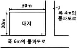 다음 그림과 같은 대지에 건축물을 건축하고자 한다. 층수는 지하는 1층(200m2), 지상은 5층으로 하고자 할 경우 최대한 건축할 수 있는 연면적은? (단, 건폐율은 50%, 용적률은 200%이다.)