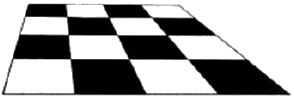 다음 그림은 서로 다른 모양과 크기의 체크무늬로 이루어진 사다리꼴 그림으로 받아들이지 않고 같은 크기의 정방형 체크무늬 타일바닥이 비스듬하게 기울어진 것으로 받아들이려는 경향이 있다. 이를 행태주의 심리학(Gestalt Psychology)에서는 무슨 원리로 설명하는가?