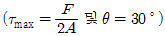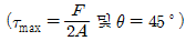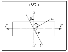 <보기>에서 a-a'으로 자른 단면의 면적이 A인 원통형 시편에 인장하중 F가 작용할 때, 단면과 θ의 각을 이루는 경사진 단면에 발생하는 최대전단응력 τmax와 그때의 각도 θ를 옳게 짝지은 것은?