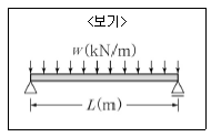 <보기>와 같이 등분포하중을 받는 단순보가 있다. 이 보가 원형 단면일 때의 최대처짐량을 δA, 정사각형 단면일 때의 최대처짐량을 δB라 할 때 δA/δB 의 값은? (단, 보의 재질 및 단면의 넓이는 두 경우 모두 동일하다.)