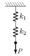 두 개의 스프링이 직렬로 연결되어 P[N]의 하중이 작용될 때, 늘어난 길이를 계산한 식으로 가장 옳은 것은?
