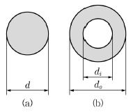 그림과 같은 단면의 축이 전달할 수 있는 최대 비틀림 모멘트 Ta와 Tb가 동일할 때 d=15mm이면 do에 가장 가까운 값은 얼마인가? (단, di=do/2이고 두 축은 같은 재료이다.)