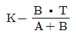 방사선투과시험 시 결함의 깊이를 파라렉스법으로 측정할 때 필름면에서 결함까지 거리를 D, 선원의 이동거리를 A, 선원-필름간 거리를 T, 시편 저면으로부터 필름면까지의 거리를 K라 할 때, 시편 저면에서 결함까지의 깊이 H를 구하는 식은? (단, 다음 식에서 B는 결함상의 이동거리 이다.)