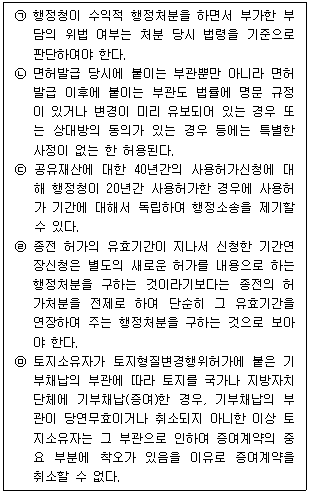 행정법상 부관에 관한 설명이다. 아래 ㉠부터 ㉤까지의 설명 중 옳은 것만을 모두 고른 것은? (다툼이 있는 경우 판례에 의함)