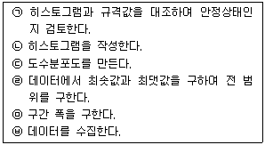 히스톡램(histogram)의 작성순서를 보기에서 골라 올바르게 나열한 것은?