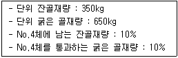 다음의 시방배합을 현장배합으로 환산할 때 잔골재량은?