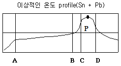 그림과 이상적 온도 profile 중 c-d구간 내 P점의 온도로 알맞은 것은?
