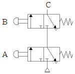 A와 B의 입력이 동시에 존재할 때 출력 C가 나타나는 공압 회로의 명칭은?(오류 신고가 접수된 문제입니다. 반드시 정답과 해설을 확인하시기 바랍니다.)