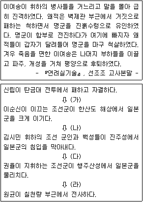다음 전투가 일어난 시기를 <보기>의 (가)~(라)에서 바르게 고른 것은?