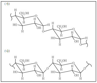 α-결합을 갖는 포도당 중합체 (가)와 β-결합을 갖는 포도당 중합체 (나)에 대한 설명으로 옳은 것은?