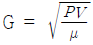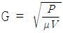 물의 혼합 정도를 나타내는 속도 경사 G를 구하는 공식은? (단, μ : 물의 점성 계수, V : 반응조 체적, P : 동력)