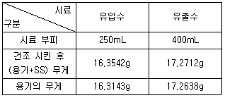 하수처리장의 SS제거에 대한 다음과 같은 분석결과를 얻었을 때 SS 제거효율(%)은?