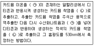 자외선/가시선 분광법을 이용한 카드뮴 측정 방법에 대한 설명으로 ()에 들어갈 내용으로 적합한 것은?