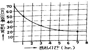 농축조 설치를 위한 회분침강농축시험의 결과가 아래와 같을 때 슬러지의 초기농도가 20g/L면 5시간 정치 후의 슬러지의 평균농도(g/L)는? (단, 슬러지농도:계면 아래의 슬러지의 농도를 말함)