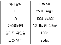 슬러지 처리를 위한 혐기성 소화조의 운영조건이 다음과 같을 때 하루에 발생하는 평균 가스발생량(m3/day)은?
