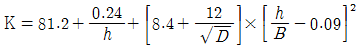 수로 및 직각 3각 위어판을 만들어 유량을 산출할 때 위어의 수두 0.2m, 수로의 밑면에서 절단 하부점까지의 높이 0.75m, 수로의 폭 0.5m일 때의 위어의 유량(m3/min)은? (단,