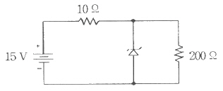다음 회로에서 제너 다이오드에 흐르는 전류는 몇 A인가? (단, 제너 다이오드의 제너항복전압은 10V이다.)
