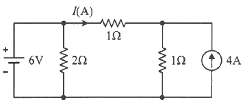 회로에서 저항 1Ω에 흐르는 전류 I(A)는?