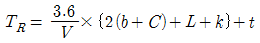 3현시 자동폐색 구간에서 열차의 길이 L(m), 신호현시 최소 확인거리 C(m), 제동거리 b(m), 안전제동 여유거리k(m), 열차속도 V(km/h)일 때의 최소 운전 시격을 나타내는 계산식은? (단, t는 선행열차가 1의 신호기를 통과할 때부터 3의 신호기가 진행신호를 현시 할 때까지의 시간(sec)이다.)