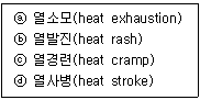 다음 중 열 중독증(heat illness)의 강도를 올바르게 나열한 것은?