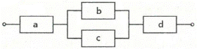다음 시스템의 신뢰도는 얼마인가? (단, 각 요소의 신뢰도는 a, b가 각 0.8, c, d 가 각 0.6이다.)