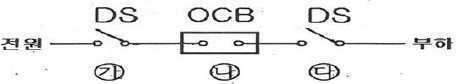 전류가 흐르는 상태에서 단로기를 끊었을 때 여러 가지 파괴작용을 일으킨다. 다음 그림에서 유입차단기의 차단순위와 투입순위가 안전수칙에 가장 적합한 것은?