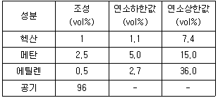 가연성 가스 혼합물을 구성하는 각 성분의 조성과 연소범위가 다음[표]와 같을 때 혼합 가스의 연소하한값은 약 몇 vol% 인가?