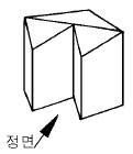 다음 입체도에서 화살표 방향이 정면도일 경우 평면도로 가장 적합한 것은?