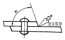 판재의 끝은 코킹 하기 쉽도록 x를 몇 도 정도로 하는가?