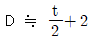 가스 용접에서 모재 두께 t가 1∼4 mm일 때 용접봉 지름 D를 결정하는 근사식은?