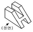 보기 입체도의 화살표 방향이 정면일 경우 평면도로 가장 적합한 투상은?