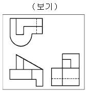 3각법에 의한 보기 투상도에 가장 적합한 입체도 형상는?