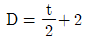 다음은 가스용접봉의 지름(D)을 구하는 식이다. 적당한 것은 어느 것인가? (단, t = 모재의 두께)