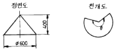 다음 그림과 같은 물체를 방사선법으로 작도했을때 전개도의 각도 읨는 몇 도인가?
