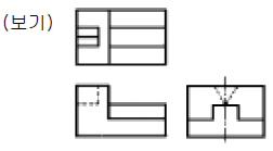 3각법으로 투상한 보기와 같은 투상도면의 입체도는?